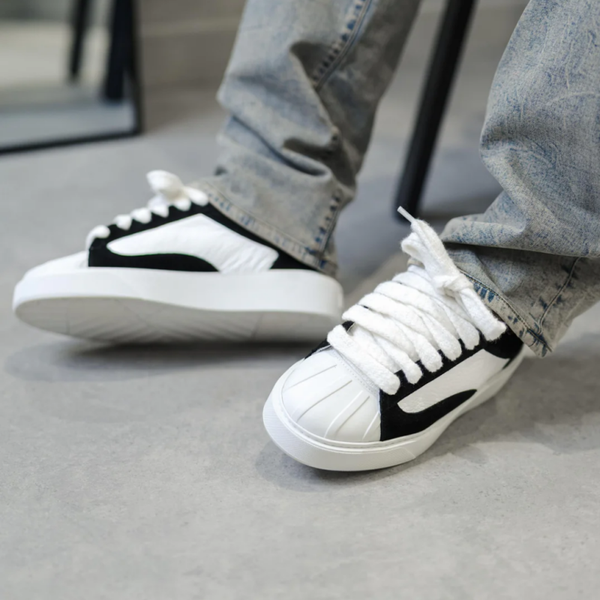 Introducing the Eclipse. Drawing quiet influence from the pared-back forms of 1960s basketball footwear, reinterpreted through a modern, sculptural lens. Its defining element, the hand-shaped rubber shell toe, has been meticulously developed over months to achieve a silhouette that balances structure with design. Designed to sit seamlessly within the flow of the upper, its curves and ridges were shaped through countless iterations to achieve a form that feels both modern and rooted in heritage.