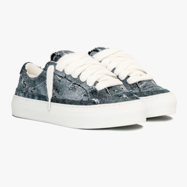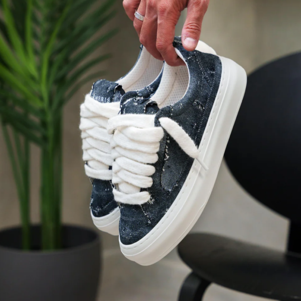 The Frayed Denim colourway features a bespoke hand-distressed washed denim upper, ultra-soft white mohair laces, and our signature Numeriś tongue tag — all sitting atop a brand new, custom-engineered sole made exclusively for the Athena line.