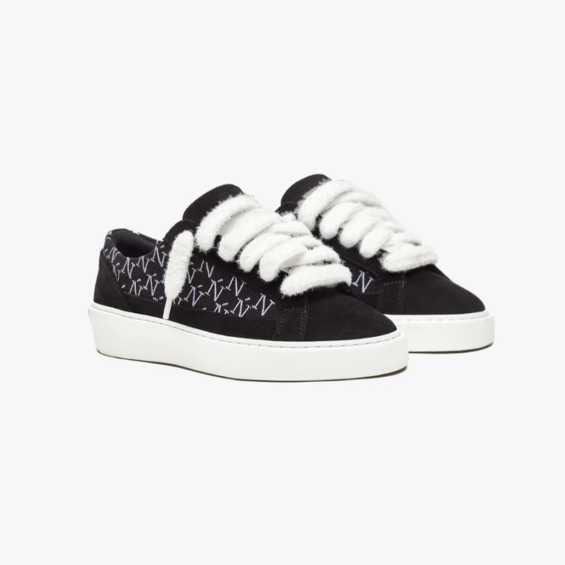 The Sigńet sneaker features Italian black suede, 20mm fluffy white laces, light grey canvas side panels which are accompanied by our sleek hand embroidered Ń monogram logo. The interior of the sneaker features grey collar lining providing unrivalled comfort. The upper rests perfectly on top of our brand new complex rubber sole, exclusively made for Sigńet. Our distinct silver logo is positioned across the tongue.