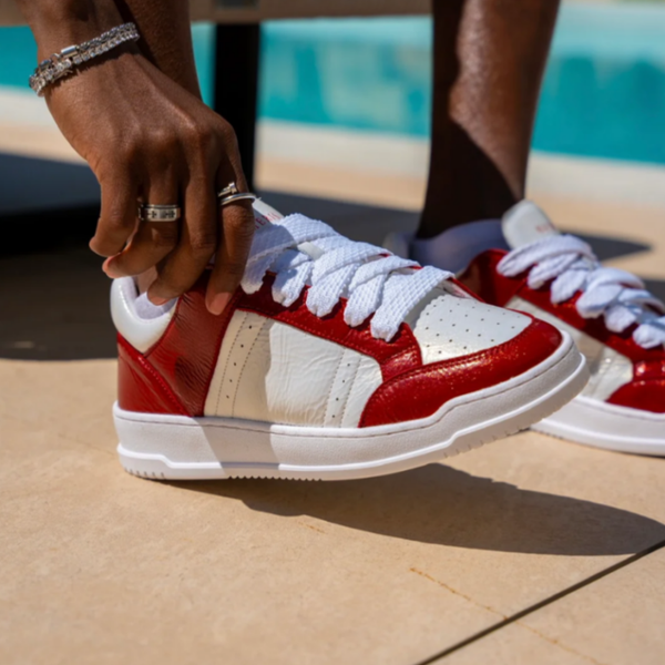 The Arena Sneaker combines everyday luxury and sportswear aesthetic. Arriving in vibrant colorways, the Cherry colourway features a full glossy Italian leather upper - which is complimented with white textured 10mm laces. The interior of the trainer features collar lining providing unrivalled comfort. The upper rests perfectly on top of our custom white sole. The sole itself features Numeriś branding embossed on the rear and is engraved on the under-sole.