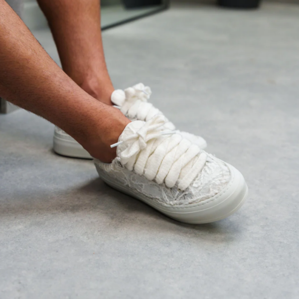 The Opaque colourway features heavy premium white veil uppers, ultra-soft white mohair laces, all sitting atop a brand new, custom-engineered sole made exclusively for the Athena line.