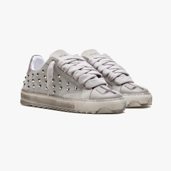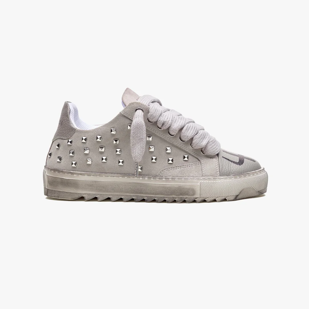 The Atelier trainer embodies the essence of Parisian lifestyle, crafted with precision in a Parisian workshop. Every stitch and detail reflects meticulous design, ensuring a refined, luxury feel. The Diesel colourway features a full premium light grey Italian suede upper, accented with silver metal studs along the side panels. Crisp tonal stitching enhances the sophisticated aesthetic, while our signature pebbled grey leather toe cap adds a distinctive touch with the shoe’s corresponding size for a unique detail.