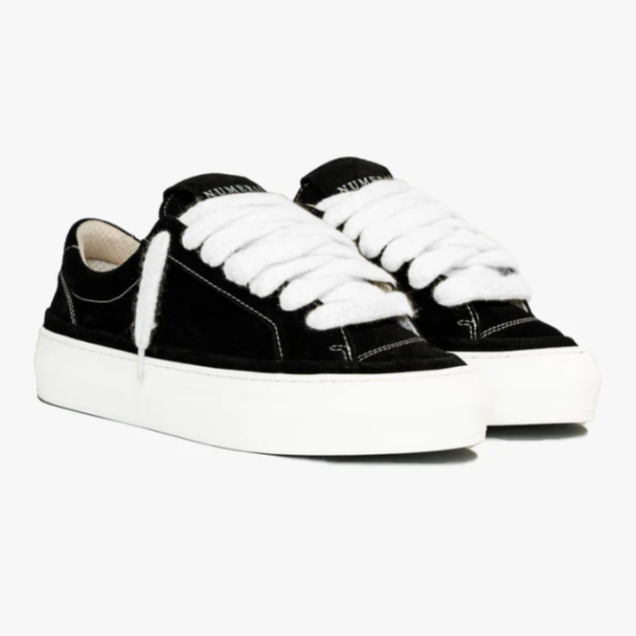 The Aero colourway features a full premium Italian black nubuck upper, ultra-soft white mohair laces, and our signature Numeriś tongue tag — all sitting atop a brand new, custom-engineered sole made exclusively for the Athena line.